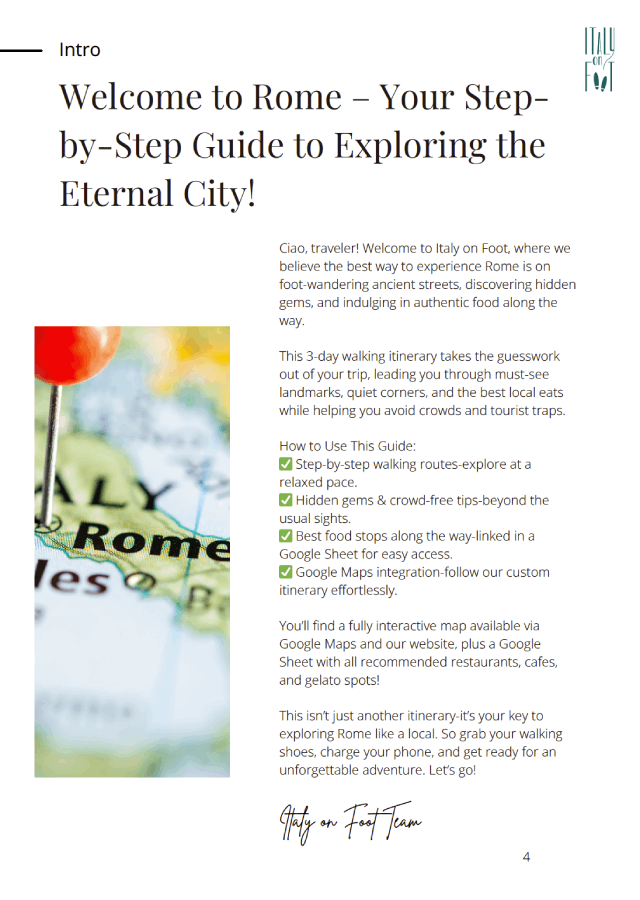 Hidden viewpoints, leafy gardens, and a locals’ food market, Rome at an easy pace.