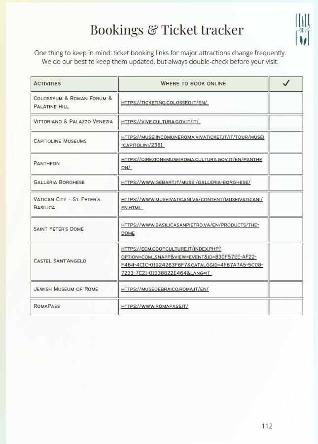 Colosseum timed‑entry slots and the St. Peter’s Basilica dome. The guide includes links and timing advice.